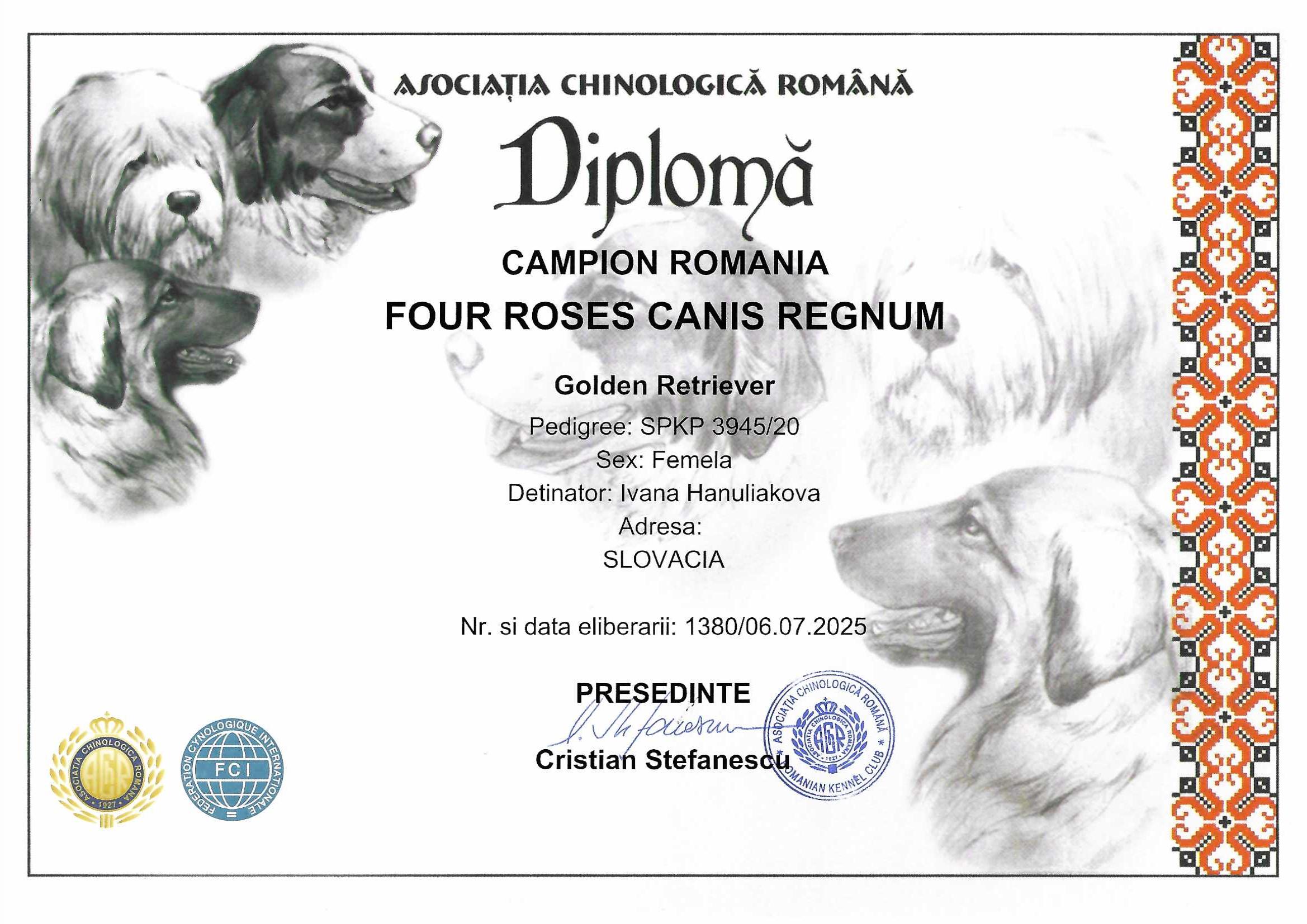 FOUR ROSES Canis Regnum "Rose" - Rumunský šampión krásy