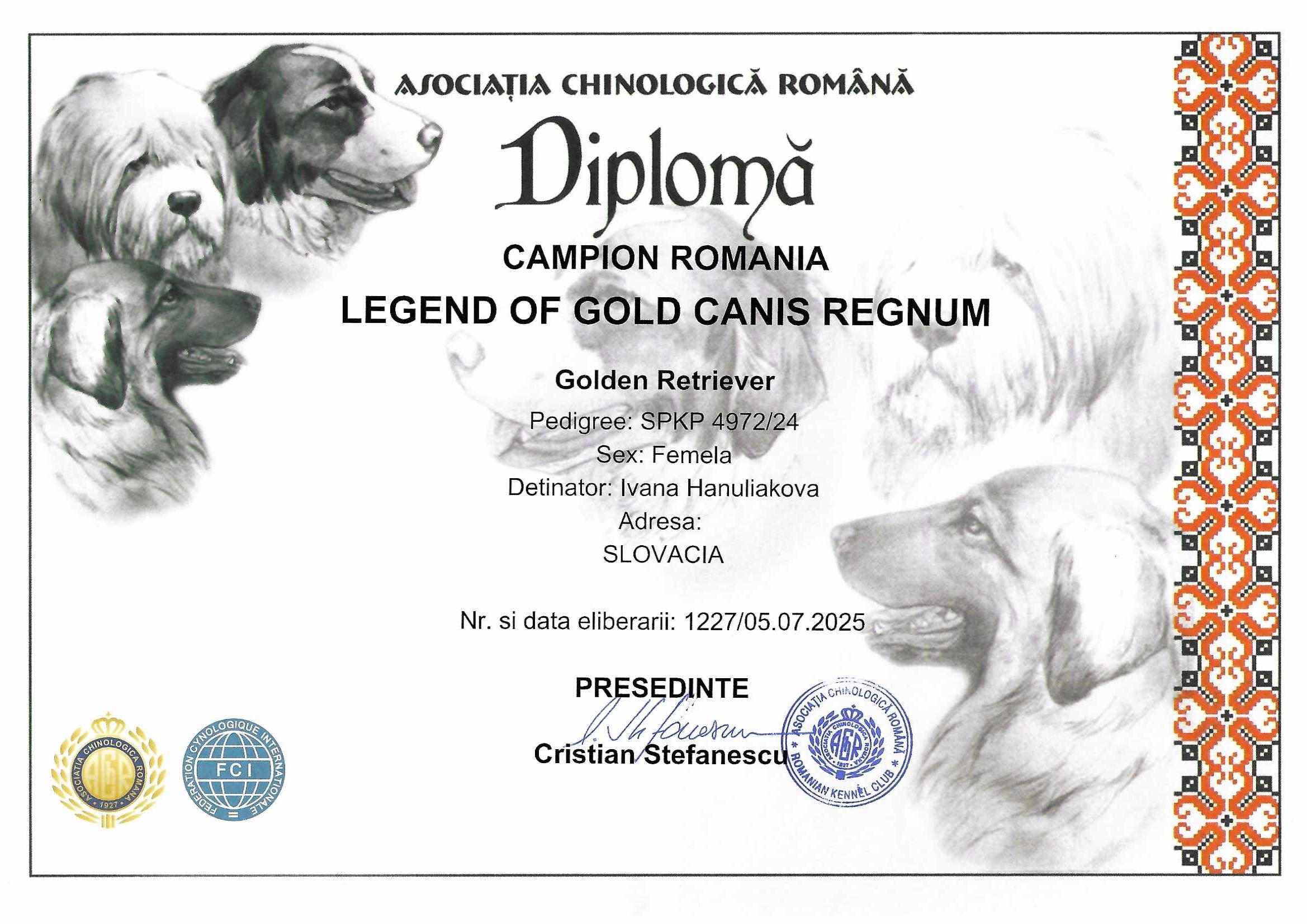LEGEND OF GOLD Canis Regnum "Roxy" - Rumunský Junior šampión & Rumunský šampión krásy