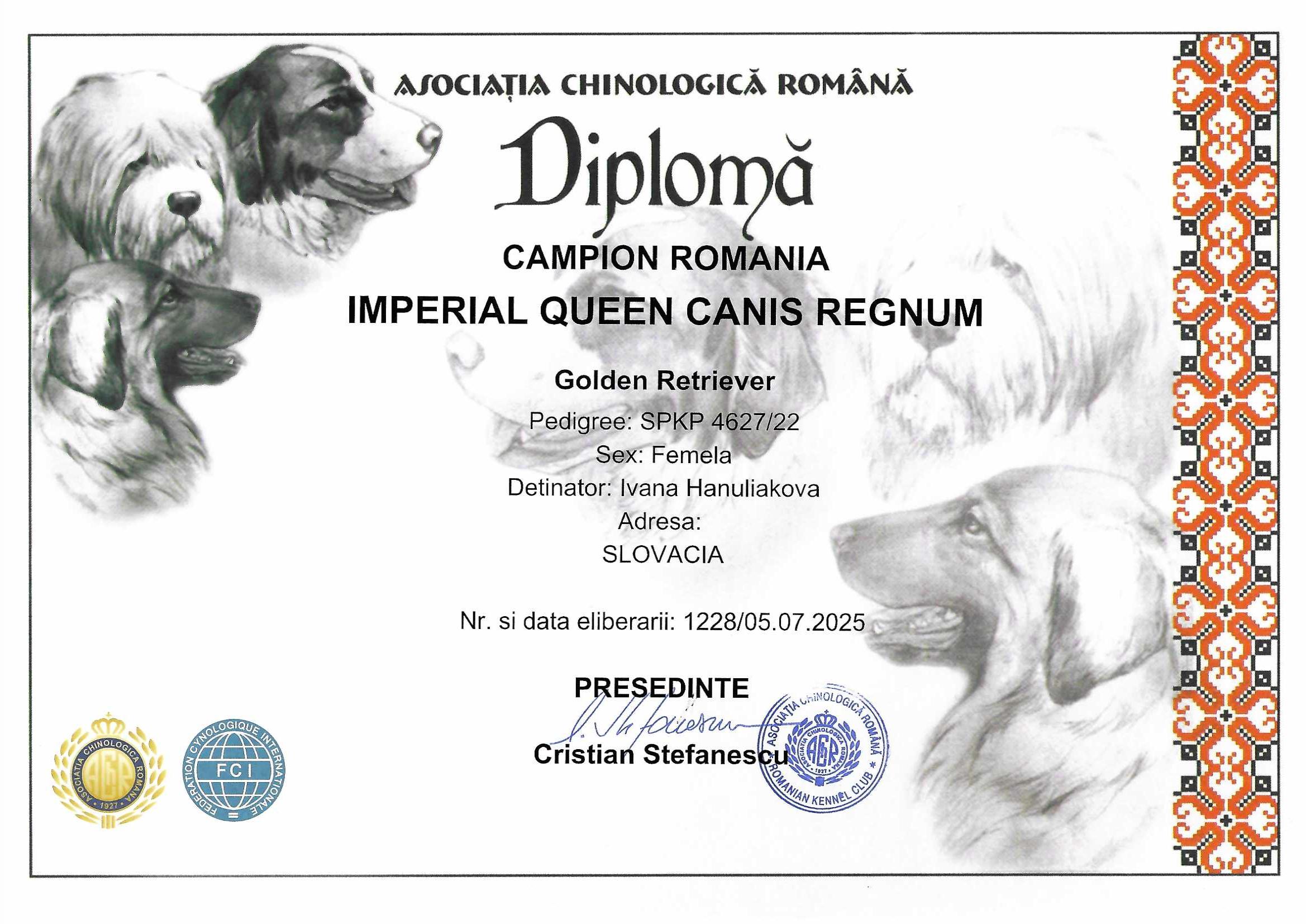 IMPERIAL QUEEN Canis Regnum "Lilibet" - Rumunský šampión krásy & Rumunský Grand šampión