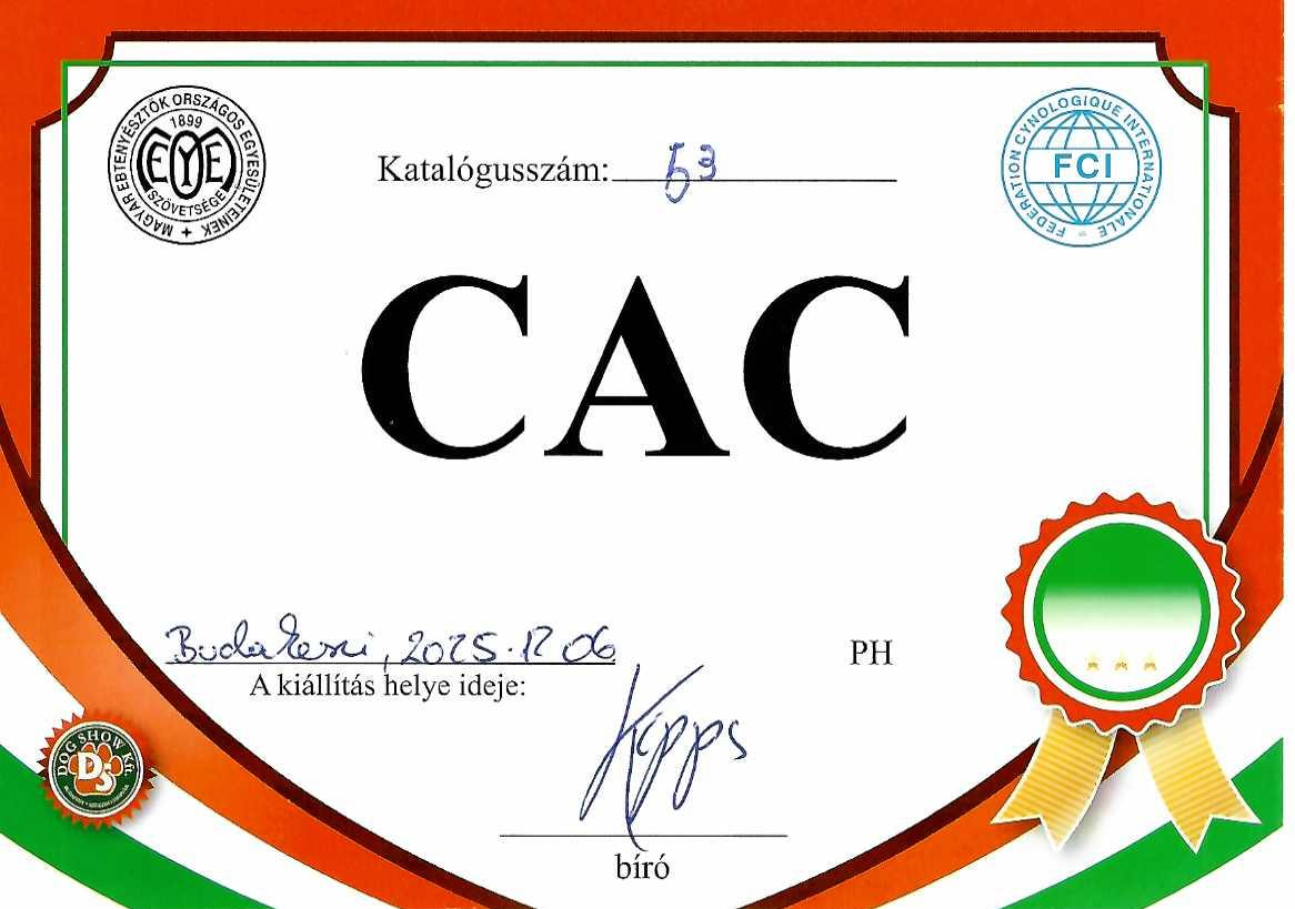 06.06. CACIB Pápa - excellent 1., HPJ, Junior CACIB, Best Junior