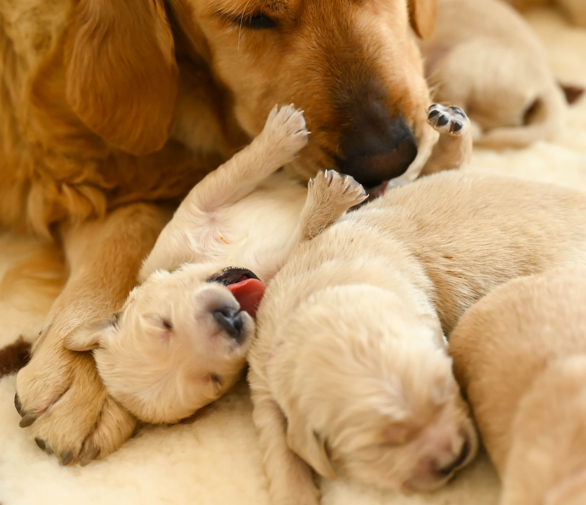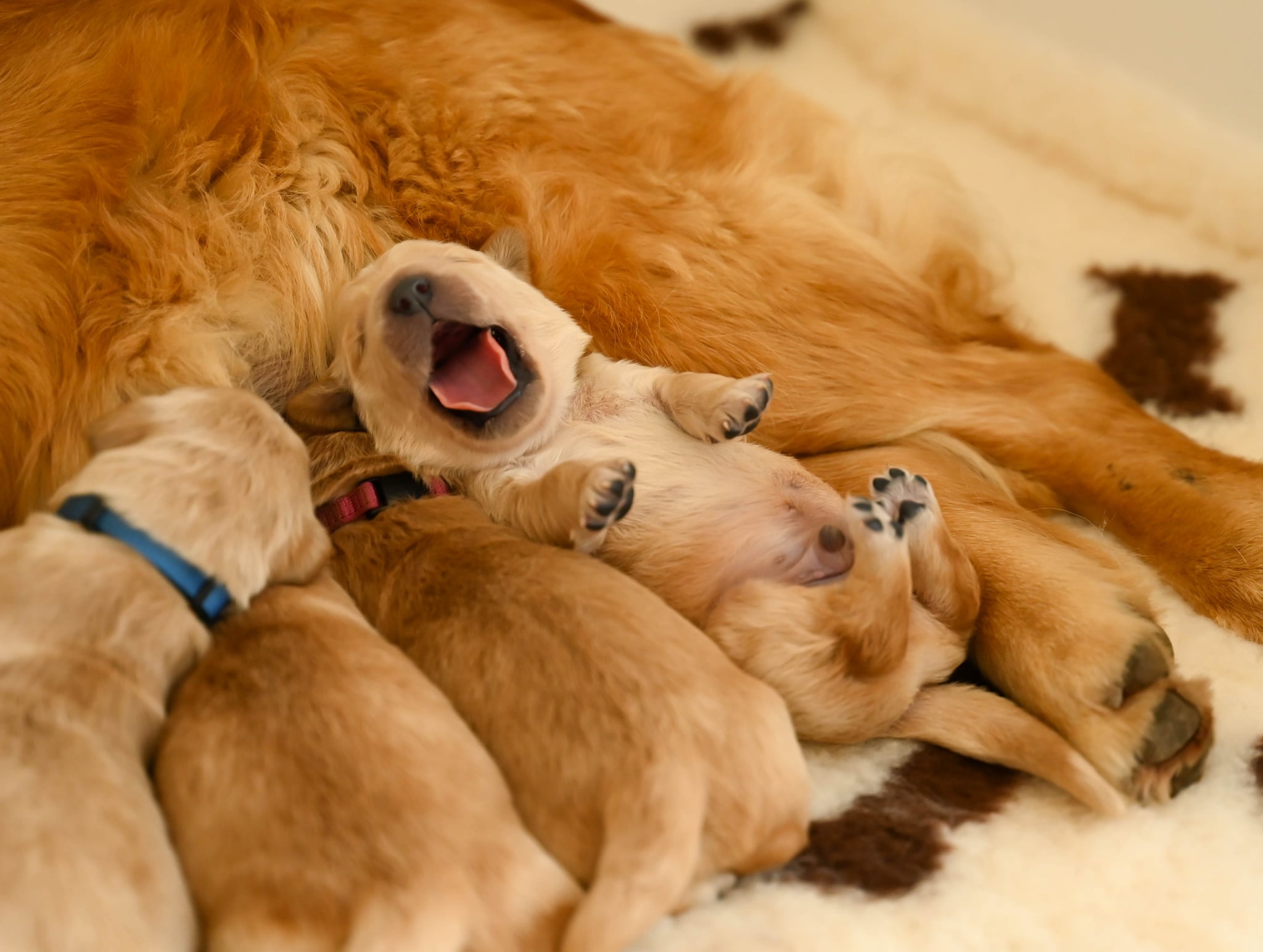 Dnes sa Ruby - Power of Gold Brdské zlato narodilo 11 kásnych šteniatok - 3 fenky a 8 psíkov. Na prvý krát to zvládla výborne, pôrod prebiehal bez problémov. Všetky šteniatka sú veľmi vitálne a sú aj váhovo vyrovnané, pričom za prvý deň už stihli pekne pribrať. Majú pekný pigment a svetlo - až stredne zlaté kožúšky. Ruby je od prvého okamihu vzorná mamička a o šteniatka sa príkladne stará.