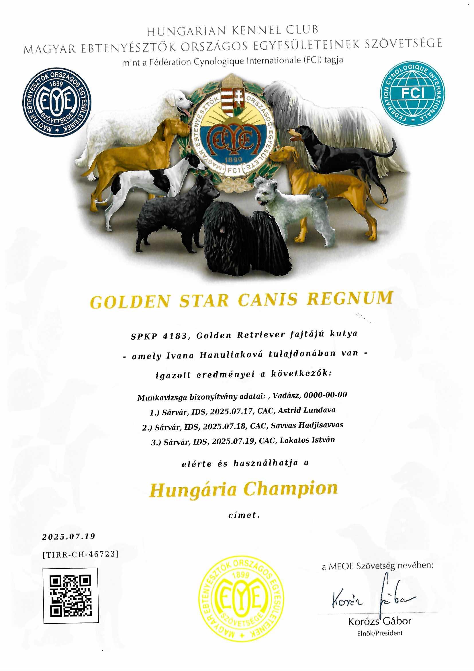 NICE GOLDEN Canis Regnum "Maui" - excellent 1., HPJ, Best Junior & JUNIOR BEST IN SHOW II. (majitelia: Matúš & Monika Kopernický)
